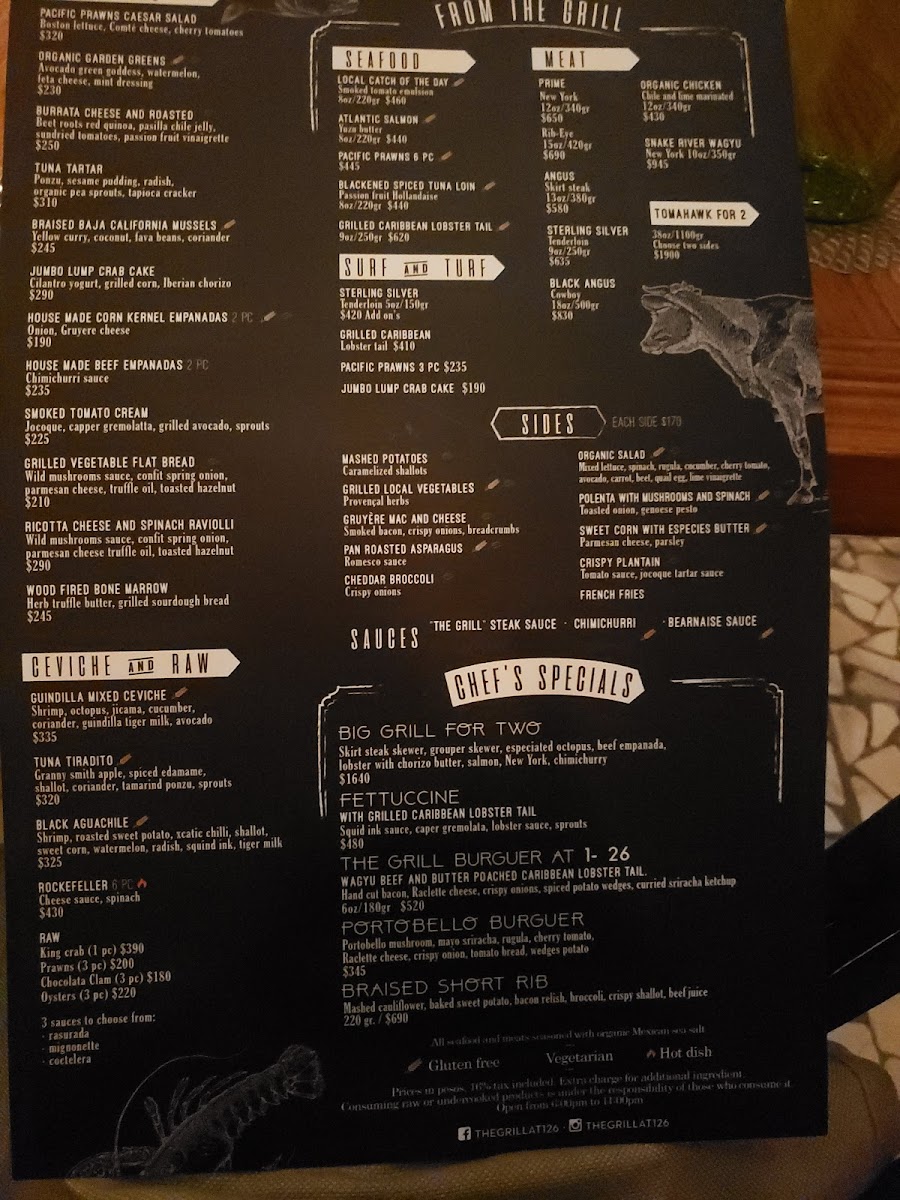 The Grill Playa del Carmen Menu